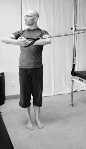 Note: if the arms elevate to 30° or above the shoulder blades will start to move – you want them to. So in an exercise like the Offering, or Swim Prep, there should be plenty of movement of the scapula and the clavicle. Cueing that rigidly anchors the scapulae in place during arm motion can have a negative effect.